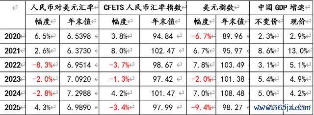 第三,人民币对美元的汇率摆脱持续三年的弱势。2022年至2024年期间,在疫情及疫后恢复、外部环境巨变,内外利率环境分化以及美元相对强势等多重因素叠加下,人民币对美元的汇率连续三年出现贬值,累计贬值幅度14.5%(同期美元指数累计上涨了13%),基本与同期GDP名义累计增幅相当,所以2021年之后,用美元计价的中国GDP基本就稳定在18万亿美元的水平。