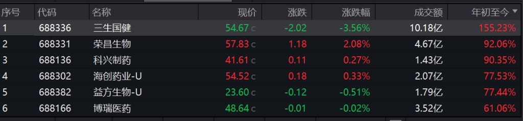 如果将时间拉长,创新药板块的表现也颇为亮眼。A股创新药指数年初至今上涨13.04%,恒生综合行业指数-医疗保健业上涨31.86%。个股来看,2025年初至今部分创新药企股价实现翻倍,甚至更多。例如,截至5月23日收盘,A股的三生国健(688336)年初至今涨155.23%,H股的三生制药(1530.HK)涨229.77%,H股的远大医药涨100.27%。