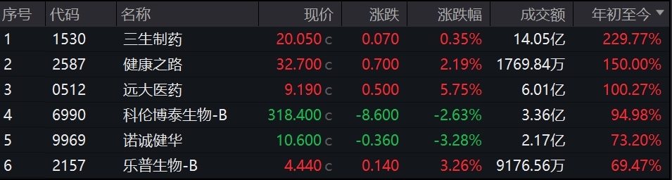 A股方面,wind显示,5月23日,阳光诺和(688621)涨12.55%,贝达药业(300558)涨8.35%,华海药业(600521)涨7.45%,泰格医药(300347)、信立泰(002294)等涨超5%。H股方面,康哲药业(0867.HK)涨13.34%,远大医药(0512.HK)涨5.75%,绿叶制药(2186.HK)涨5.74%,金斯瑞生物科技(1548.HK)、信达生物(1801.HK)等涨超4%。